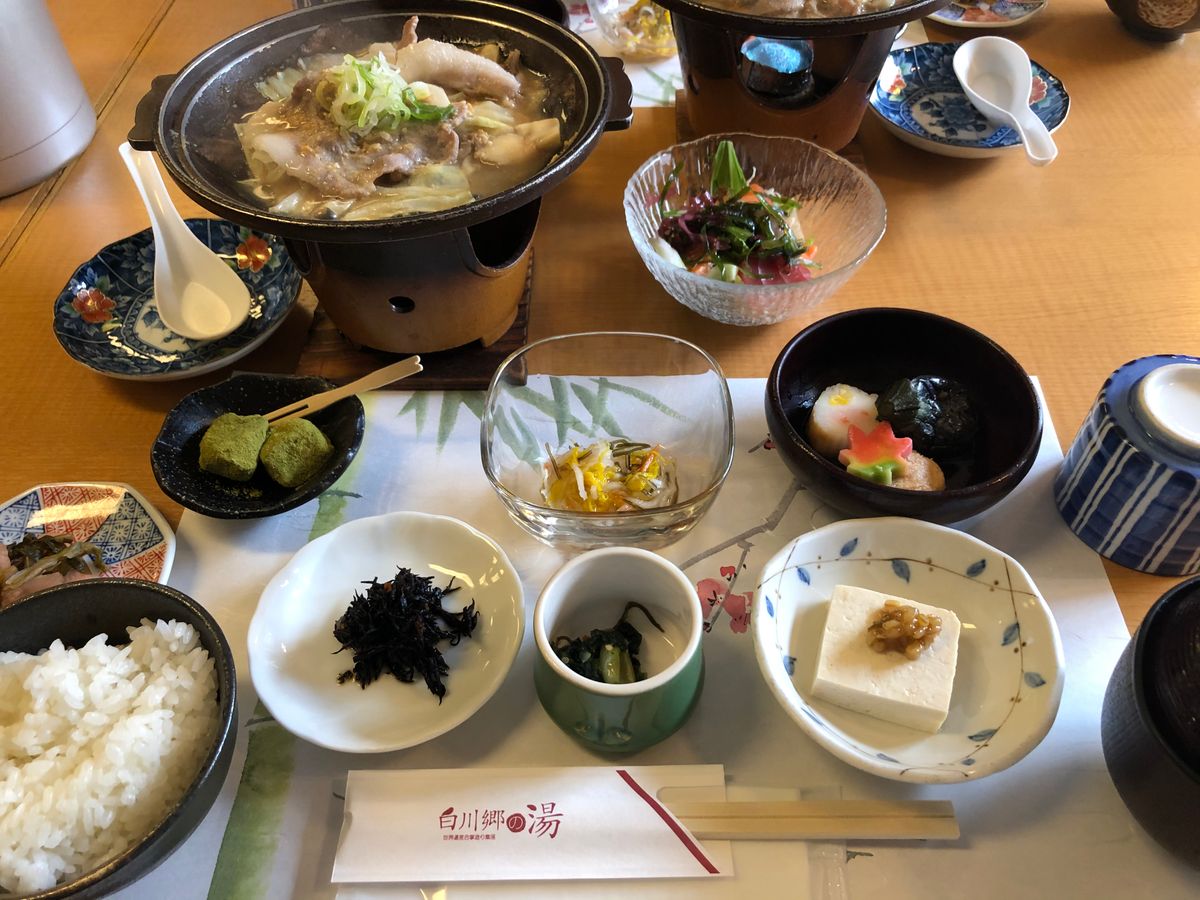 次は白川郷へ。まずは昼食。とても充実していて美味しかったです。飛騨牛、ほうば味噌も食べられ大満足でした。この時期の白川郷は雪景色と思い込み、身支度も重装備で臨みましたが、なんと雪がなく、とても残念でした。しかし、散策にはかえって良かったのかもしれません。何軒かある中で、和田家の中を見学しました。世界遺産の豪雪地帯の合掌造り。とても興味深かったです。この日の夜から雪になり、翌日は雪景色だったようです。行かれる前には白川郷観光協会のサイトで天気やライブカメラが見られますので、確認されて行くと良いと思います。白川郷へは、やはりバスツアーが大正解だったと思いました。添乗員さん、楽しい旅をありがとうございました。雪がなかったので、ちょっと残念で星4つとさせていただきました。