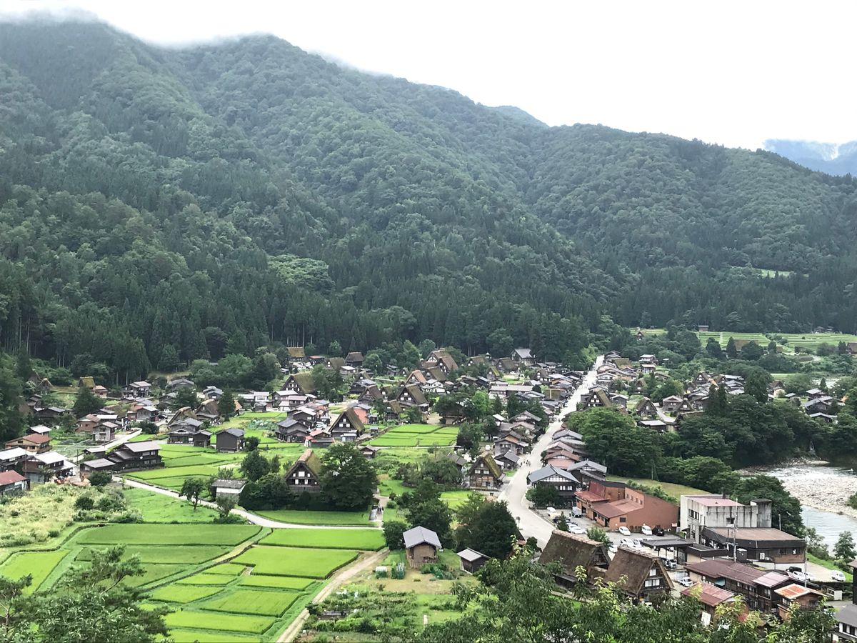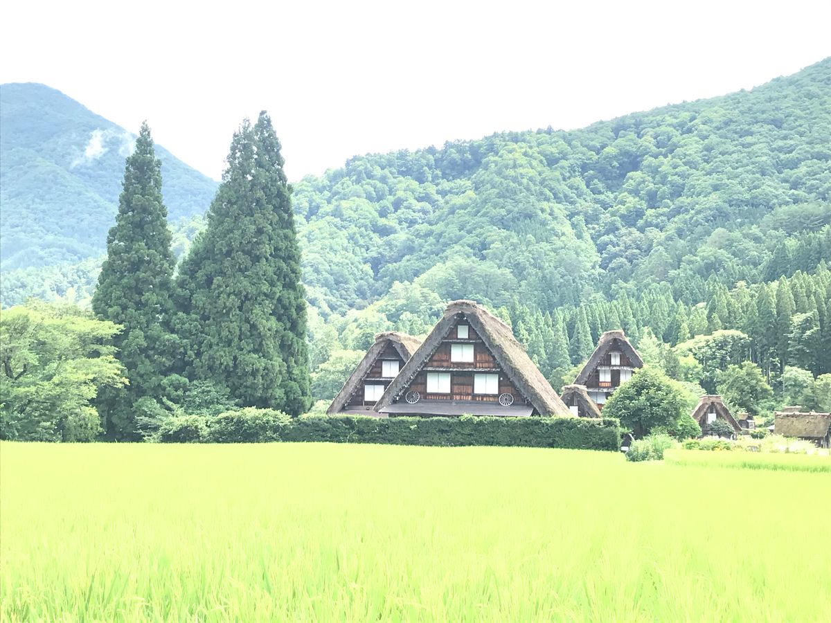 もし機会があれば、春の新緑時には合掌造りの家々の間に見える田植え後もとても緑が綺麗ですよ。