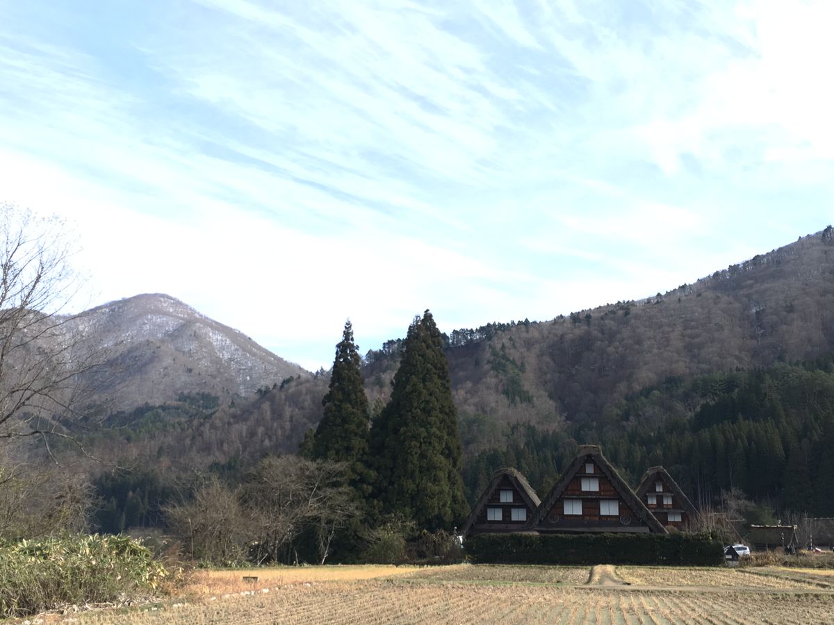 初めての白川郷。行ったのは初雪の翌日で、薄っすらと雪が残っていました。とても綺麗な山々も、白川郷散策もとてもいい思い出になりました。食べてみたかった五平餅も食べれてよかったです。