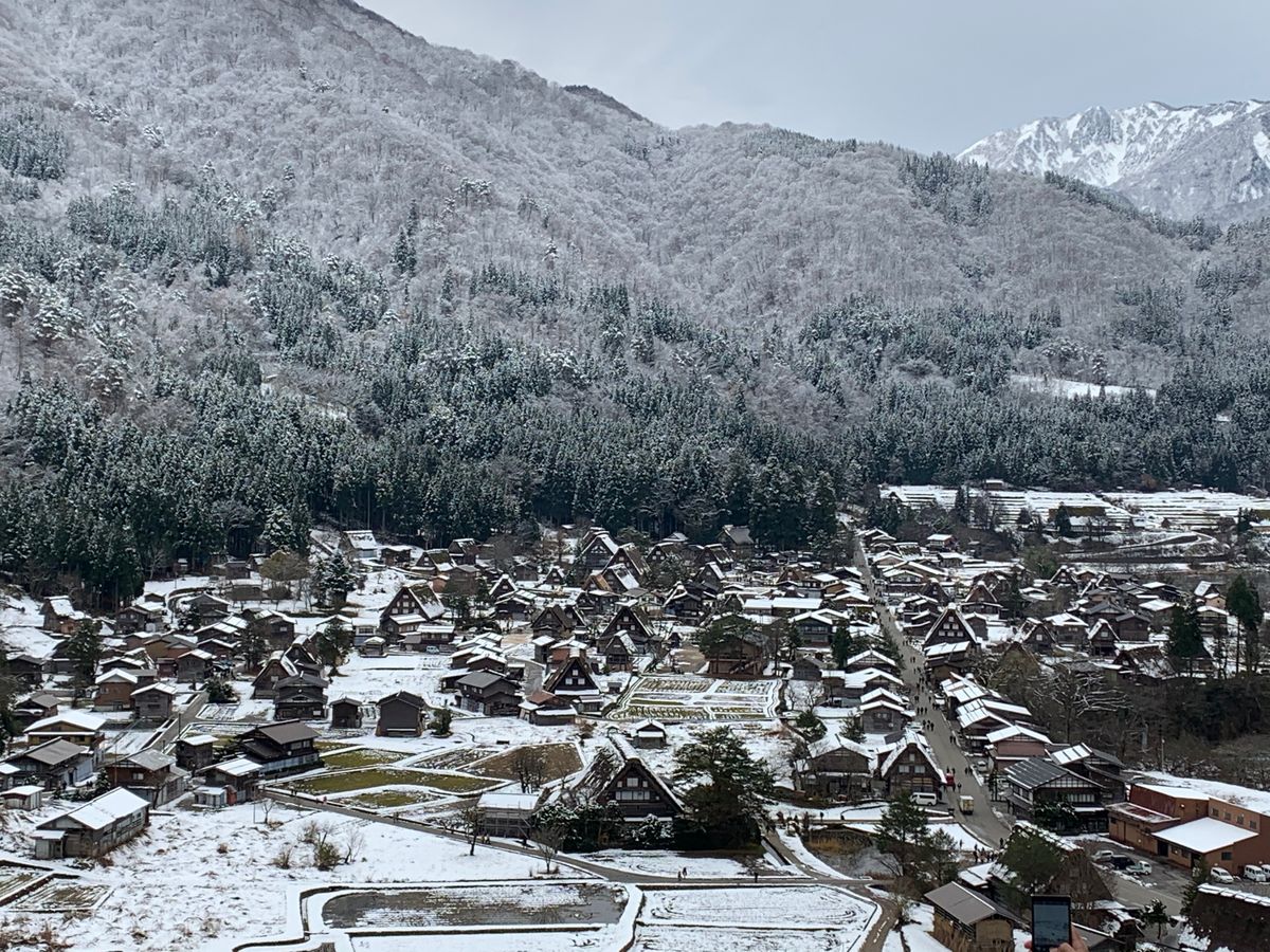 うっすらと雪化粧した集落の全景画像は絶景です。ありがとうございました。