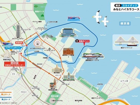 Tour Yokohama on the amphibious bus "Sky Duck"! With its high body, you can enjoy a unique view when it's running on the ground. And the highlight, a thrilling splash into the water while still in the bus, is sure to excite!