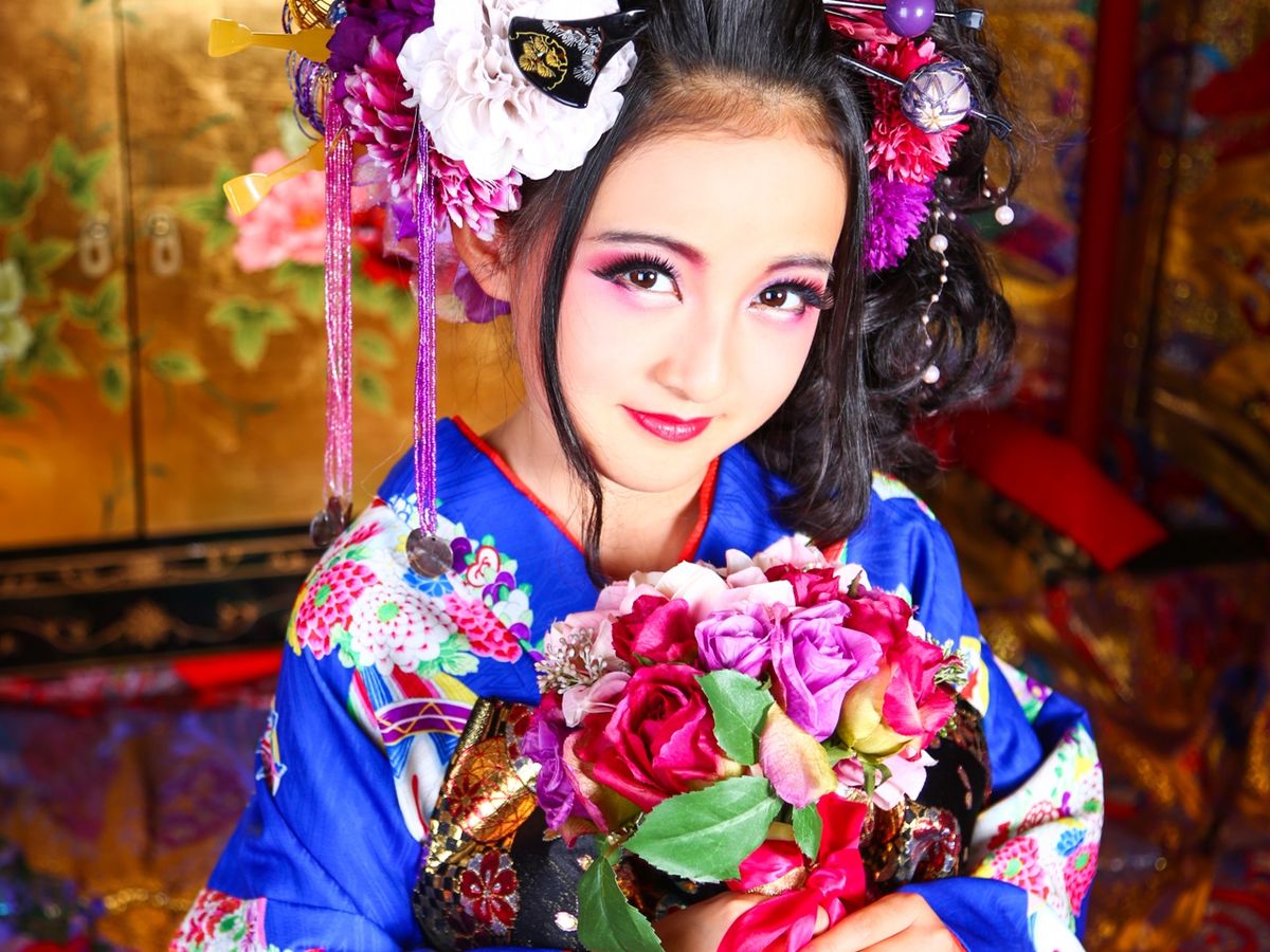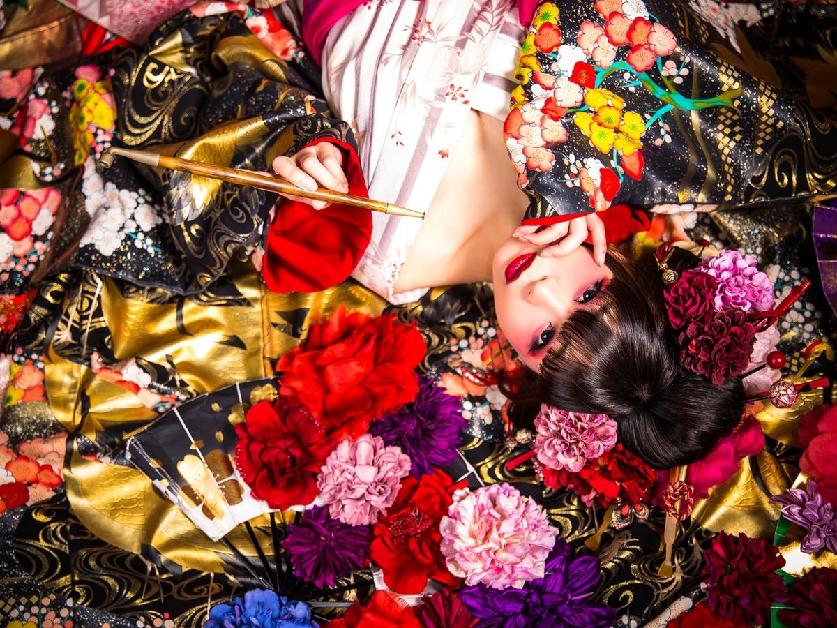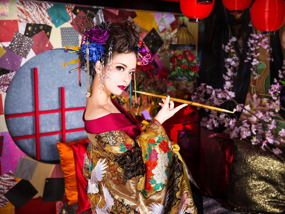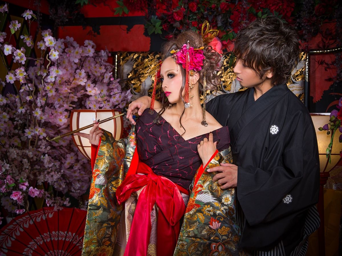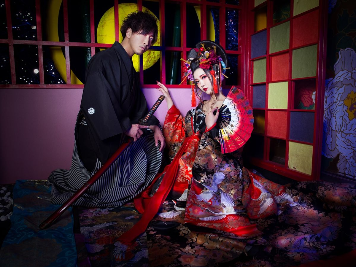 Transform into a stunning oiran with a modern twist. With professional make up, adorn yourself with a decorative kimono and get helpful dress-up and makeup assistance to take glamorous photos in a beautiful studio.