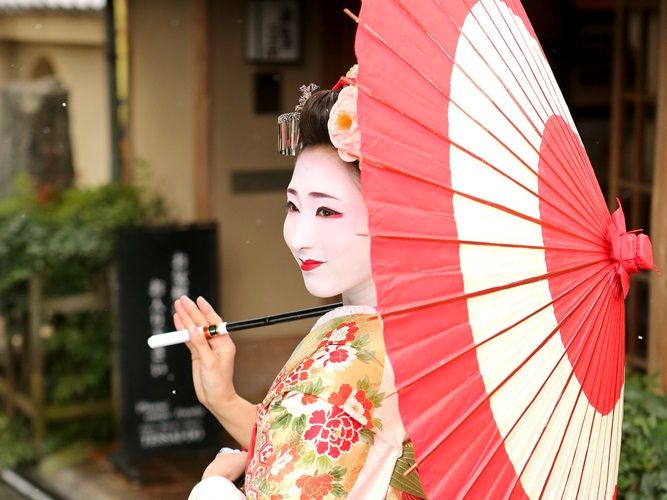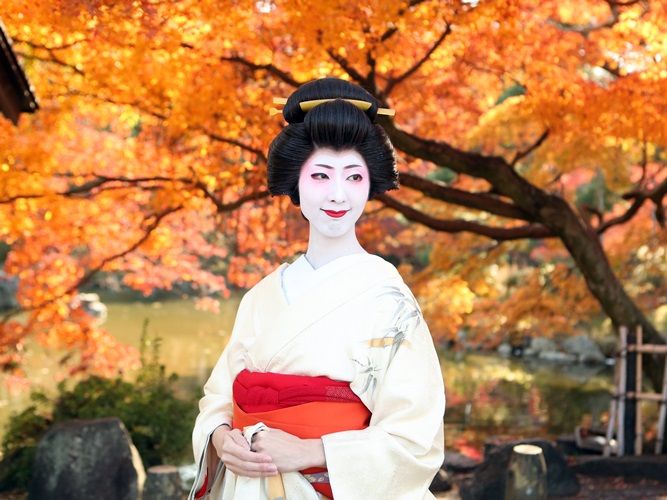 While in Kyoto, take the once-in-a-lifetime opportunity to transform into an elegant maiko or geisha! Take photos in dramatic white makeup and colorful kimono.