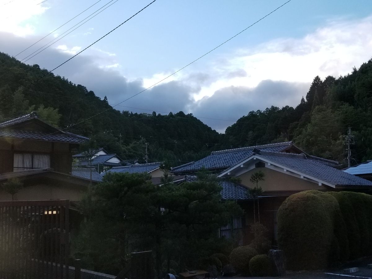 Traditional tiled houses on the drive up the hills at sunset