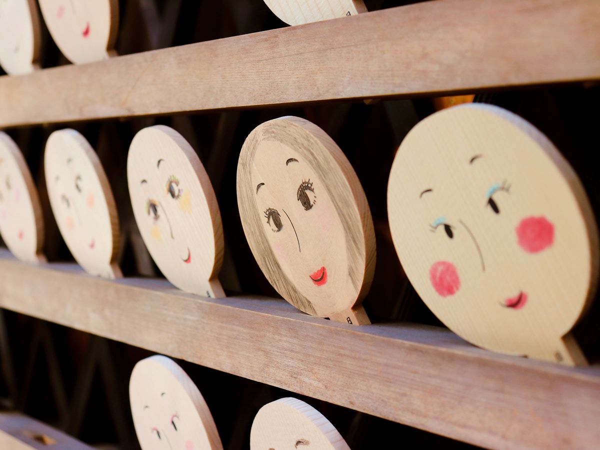 "Kagami ema" mirror-shaped votives at Kawai Shrine