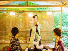 Enjoy watching the Genji fireflies fluttering over the river surface, and savor Kyoto cuisine at the atmospheric riverside seating. On specific days of the week, you can also enjoy watching beautiful dances and taking photos with an elegant Maiko.