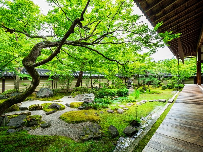 Peaceful Zen Temple Surrounded by Lush Greenery