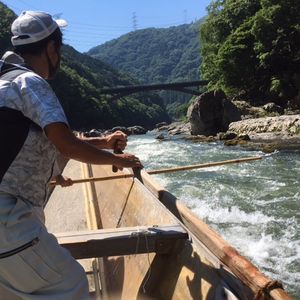 As a summer vacation memory, I invited a female acquaintance and her children to experience the Hozu River boat ride in Kyoto. The weather forecast at the time predicted rain, but it didn't rain much, and the water level was reportedly very good, about ten times a year. It was the first time for both the acquaintance and the children to go down the river, and they were very pleased with the boatman's calls, conversations, and the thrilling steering. They mentioned that they would like to come again if given the chance. They returned with smiles and were very satisfied. Thank you very much!