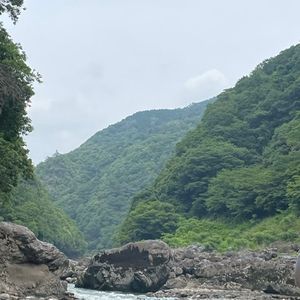 It was a very hot day, but I had a great time by the water. Unfortunately, due to the continued sunny weather, the water level was a bit low, which made it feel less wild, but the lush green summer valley was beautiful. I would love to see the autumn foliage and spring cherry blossoms next time. If you have the time, I definitely recommend experiencing it. The grilled squid sold by the boat at the end was also fantastic. Thank you to the boatmen for entertaining us for about two hours.