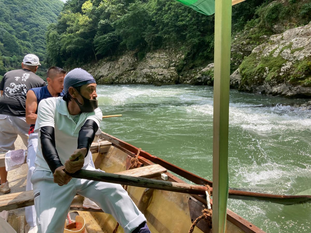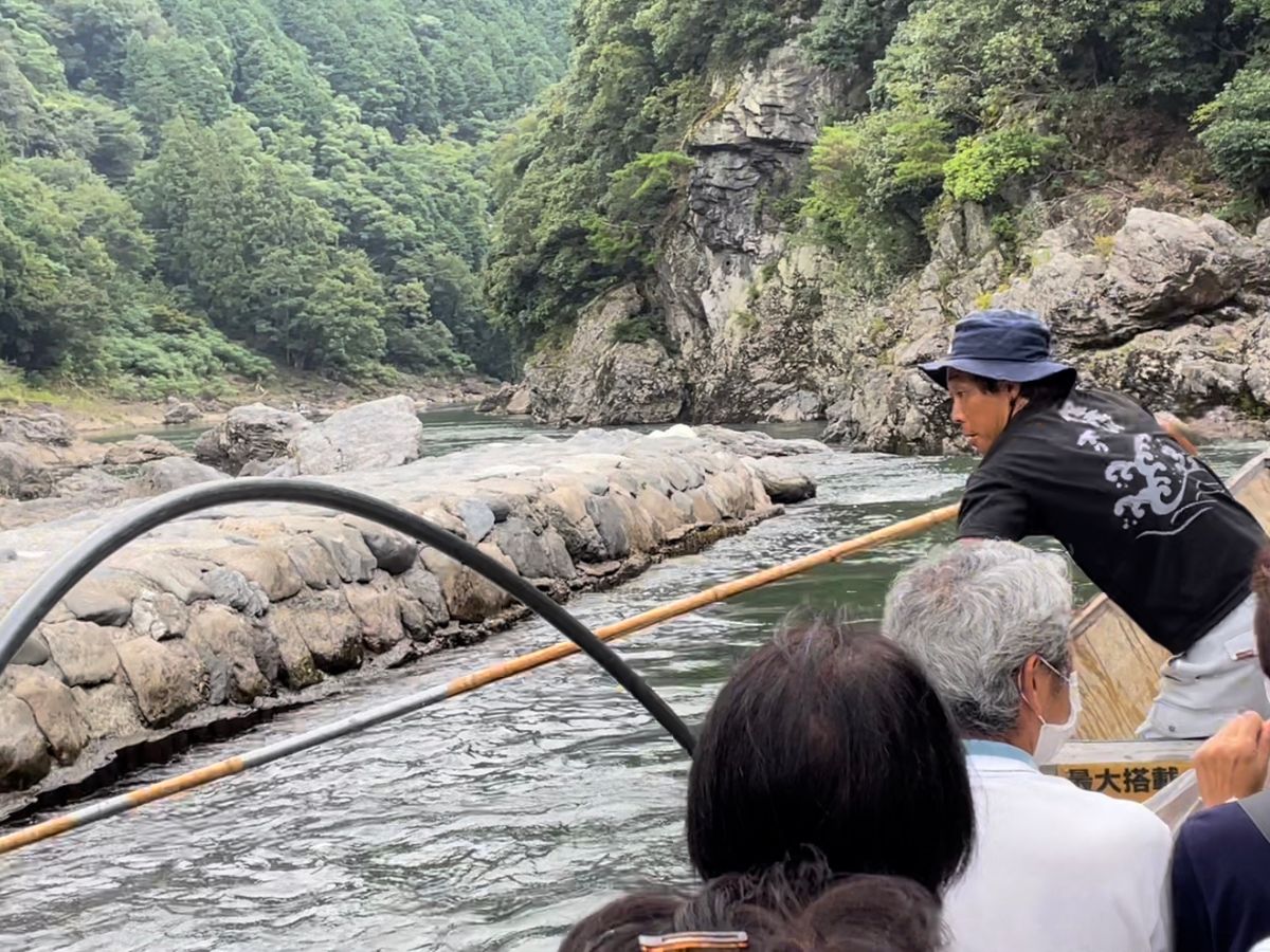 As a summer vacation memory, I invited a female acquaintance and her children to experience the Hozu River boat ride in Kyoto. The weather forecast at the time predicted rain, but it didn't rain much, and the water level was reportedly very good, about ten times a year. It was the first time for both the acquaintance and the children to go down the river, and they were very pleased with the boatman's calls, conversations, and the thrilling steering. They mentioned that they would like to come again if given the chance. They returned with smiles and were very satisfied. Thank you very much!