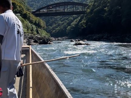 8月21日に行ってきました。船頭さんのお話楽しかったです!前日まで雨で水量多くて波もあって楽しく乗れました、天気も気になりまたが日傘して暑いぐらいでした。最後にボートで売りにきてくれたみたらし団子美味しすぎました!笑 緑もあって癒やされました。桜、紅葉と綺麗な景色みてみたいです!トロッコ列車もリベンジしたいです!