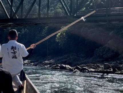 船頭さんが一生懸命漕ぐ姿、竿で方向を決めていく様子を見ながら説明を聞いて楽しく川下りをしました。安全に自然と親しめてよかったです。