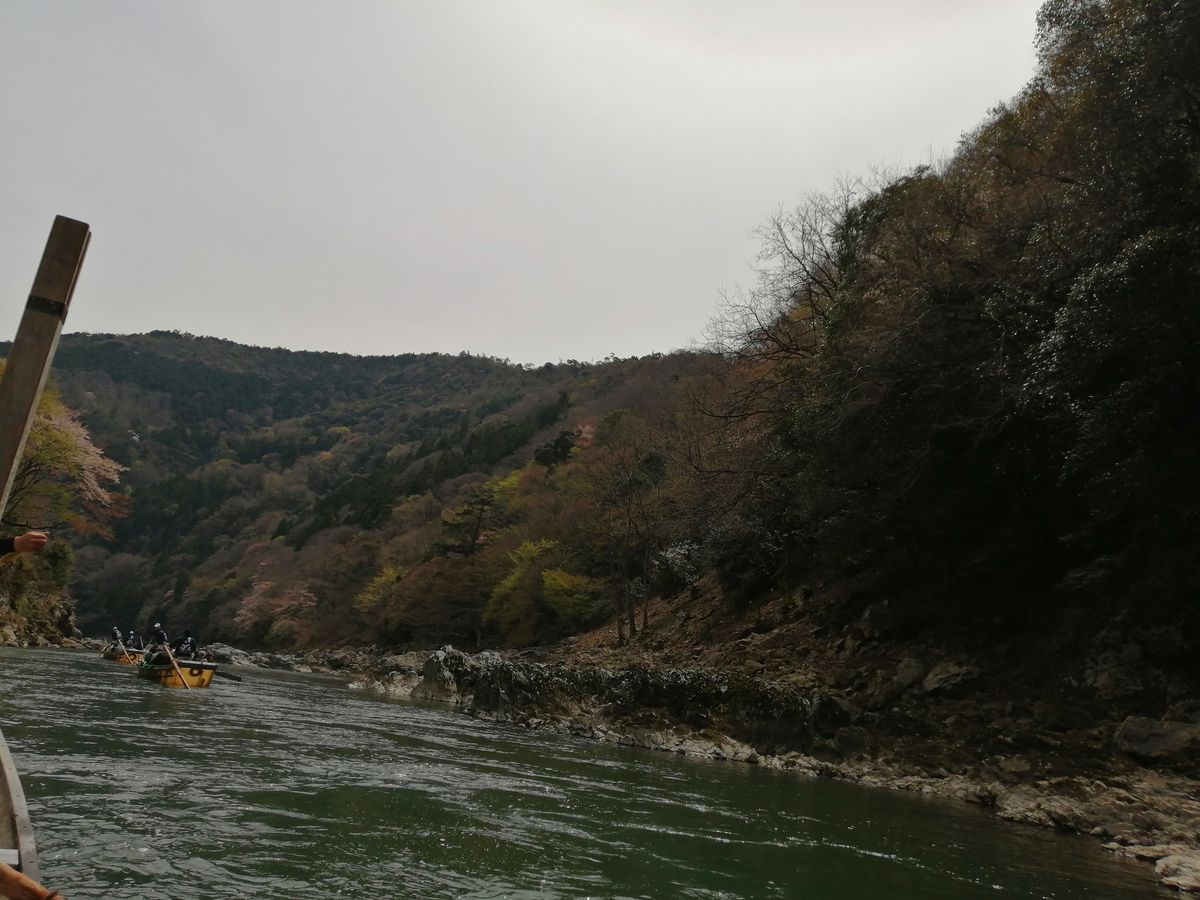 小雨の中の保津川下りでしたが、屋根もあり問題なく楽しめました!急流でのスリルや船頭さんのトークも楽しく、まて途中で見れた桜も美しく、充実した時間を過ごせました。