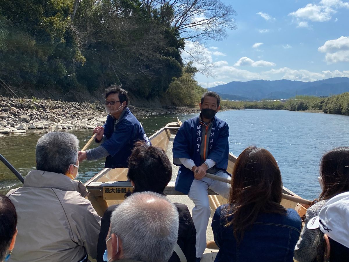 水流が少なく2時間かけてゆっくり川を下りました。3人の船頭さんが楽しくガイドしながらなので、退屈することなく楽しめました。最後に売店の船が来て、おいしいみたらし団子を食べました!桜がまだ残っていて景色も綺麗で楽しかったので、また紅葉の頃か、水流が激しい頃に、訪れようと思います。マスクして、人数も詰め込むことなくで、コロナ禍でも楽しめるんじゃないでしょうか。