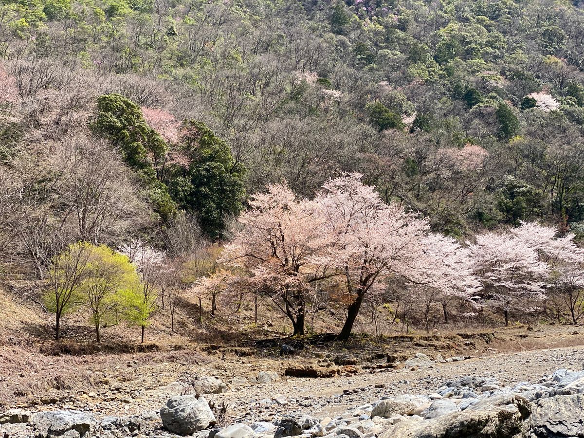I thought I would get bored after riding for two hours, but the boatman's stories were enjoyable, and the river descent was not too intense, allowing us to have a great time. I was hoping to see cherry blossoms, but it seems I was a bit early. In Arashiyama, they were about 30% in bloom, but in Hozu River, there were hardly any blossoms. I would love to come back during the fresh green season.
