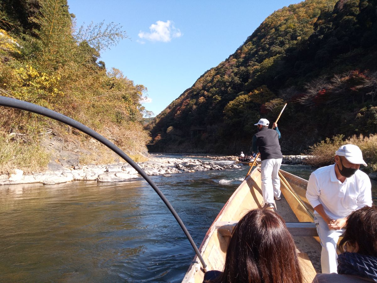 I participated in the Hozu River boat ride! The weather was nice from the morning, and the autumn leaves were beautiful, making the view absolutely stunning! The boatman was also a funny guy, and we were laughing the whole time! In December, it gets cold, so it's better to dress warmly. Eating and drinking were allowed on the boat! There were boats selling oden and grilled squid, so buying and eating those would enhance the atmosphere and make it even more enjoyable! I want to ride this in every season!