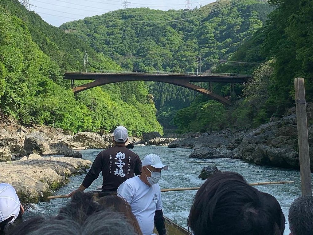 It was wonderful to go down the Hozu River during the fresh green season. Thanks to the excellent commentary from the boatman and the desperate steering from the new boatman, we thoroughly enjoyed the hour and a half river ride. We stayed at Yunohana Onsen, and on the way back, we returned to Arashiyama by river, then after disembarking, we also visited the Monkey Park, making for a fulfilling weekend. It's convenient that you can purchase boarding tickets in advance from the website.