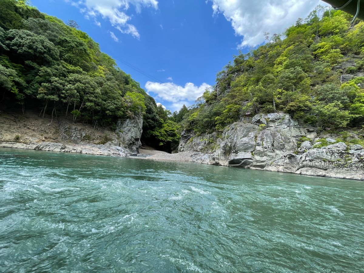 岩の横ギリギリを通ったり、スリリングだけれど安定感のある川下りでとても楽しめました。