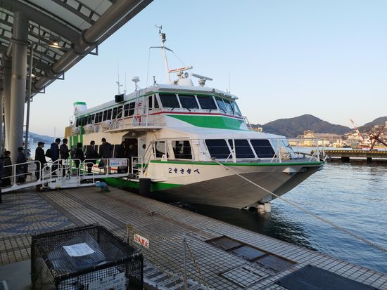 It was convenient to be able to make a reservation in advance. Since I stopped by Fukue along the way, it took quite a bit longer (five hours) than the jet foil, but the price was reasonable and it was comfortable.