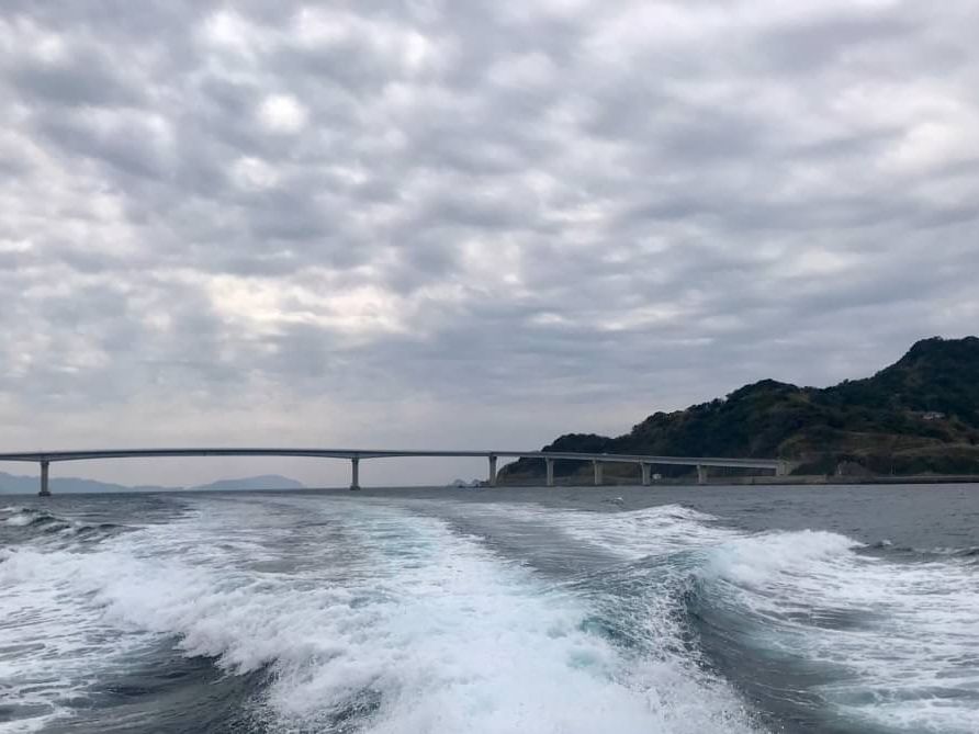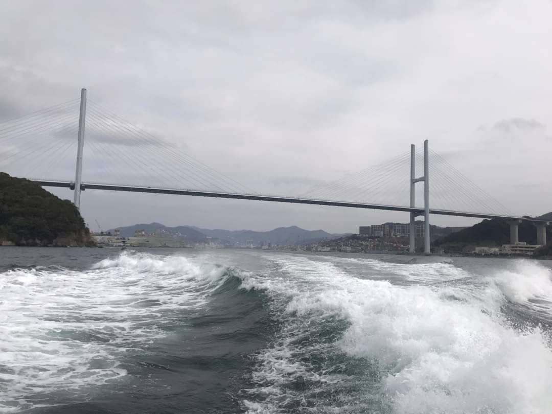 女神大橋からは速度が上がるので軍艦島周辺まで船の中に戻る必要があります。