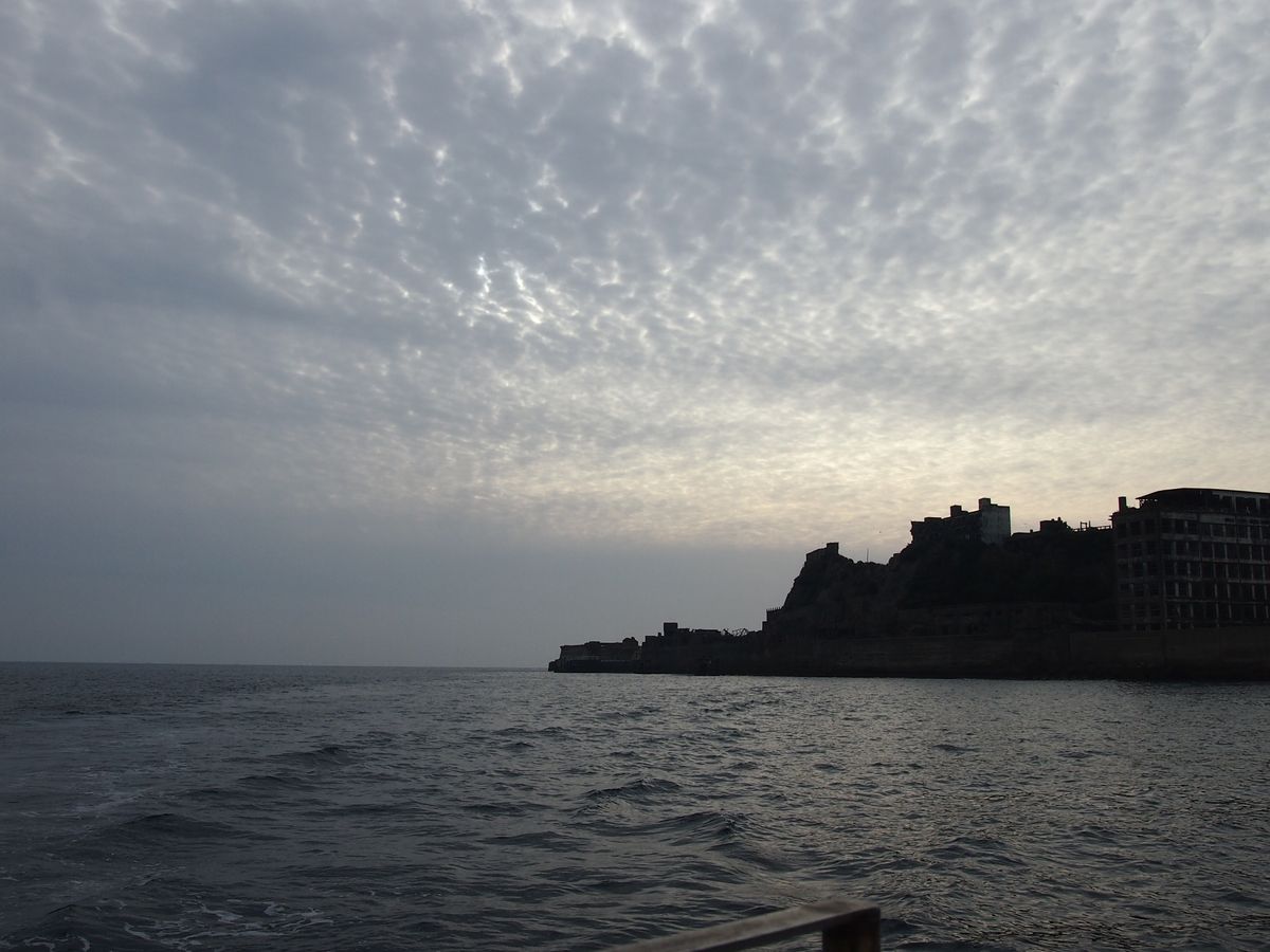 Since I joined in the afternoon, when we returned and saw the entire view of Gunkanjima, it was backlit, and the silhouette stood out. The photos I took from inside the island turned out bright.