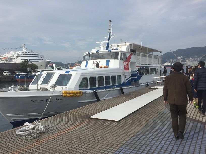 体験談やブログをチェックして大型船のある「軍艦島コンシェルジュ」さまにお世話になりました。