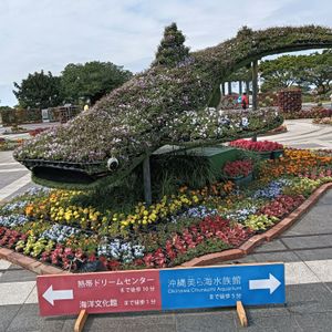 I visited the Churaumi Aquarium again because I went there 30 years ago. It was crowded with families. The Ocean Expo Park, where the Churaumi Aquarium is located, is spacious. Since the time allocated for the aquarium is about 140 minutes, it's a good idea to consider your time management while walking around. Manzamo was well-maintained along the route. Nago Pineapple Park was filled with many interesting sculptures, which was enjoyable. Since lunch is not included in the course, I think it's a good idea to bring something like rice balls. The dining places and food trucks at tourist spots were very crowded, and there wasn't enough time to eat. I bought rice balls at a convenience store and brought them with me. I participated in a plan that included a barbecue dinner. They cooked it right in front of me, and it was delicious.