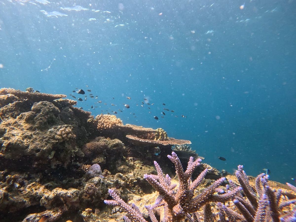 近くにはたくさんのサンゴがあり、魚もたくさんいました。場所によっては非常に浅いところもあり、深いところもありました。