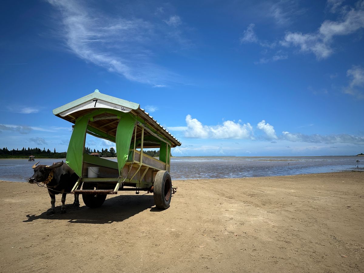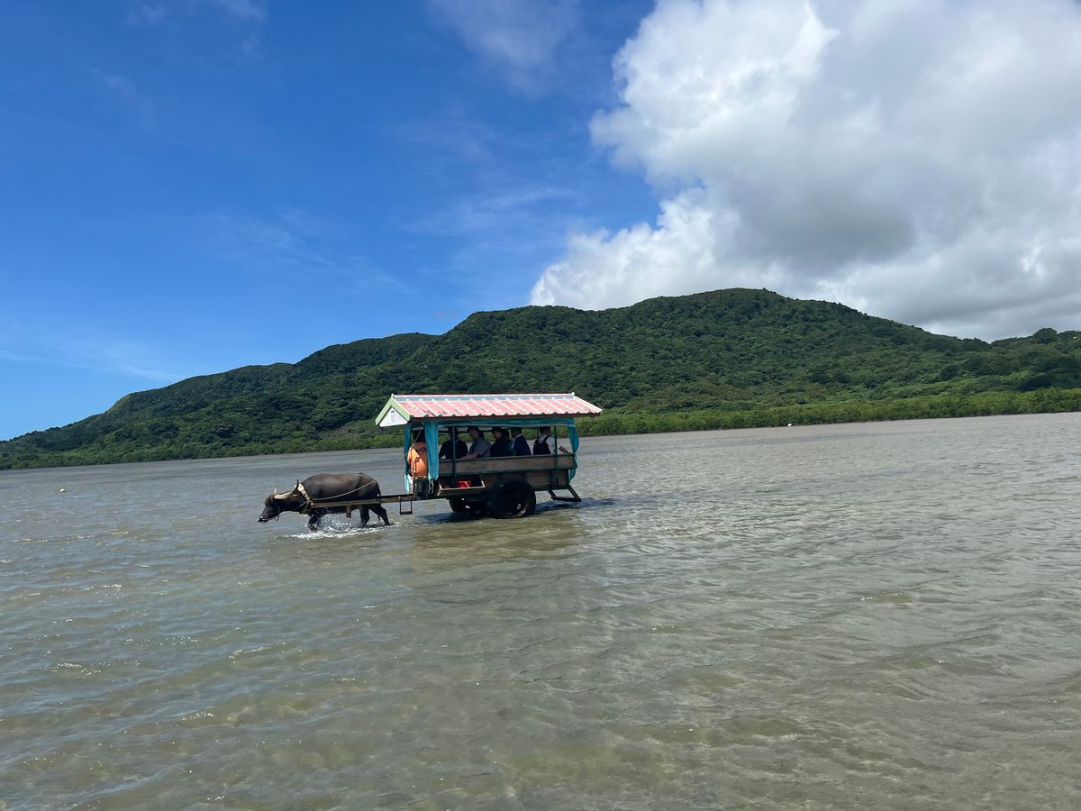 In the morning, I participated in a kayak tour, and in the afternoon, I joined the water buffalo ferry tour to Yubu Island. The weather was great, and I was able to see the mangrove roots by kayak! It was my first time kayaking, but our guide, Hayata, was cheerful and attentive, which made the tour enjoyable. We were able to take many photos. For lunch, we were taken to a hamburger shop near Uehara Port. In the afternoon, we traveled to Yubu Island in a microbus with our guide, Macchan, who entertained us with fun stories on the way to the water buffalo ferry terminal. It was hot while exploring Yubu Island, so the pineapple and awamori gelato we had at Yubu Island Teahouse was delicious.
