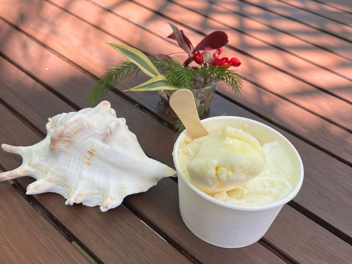 由布島散策は暑かったので島内の由布島茶屋で食べたパイナップルと泡盛のジェラードが美味しかったです。