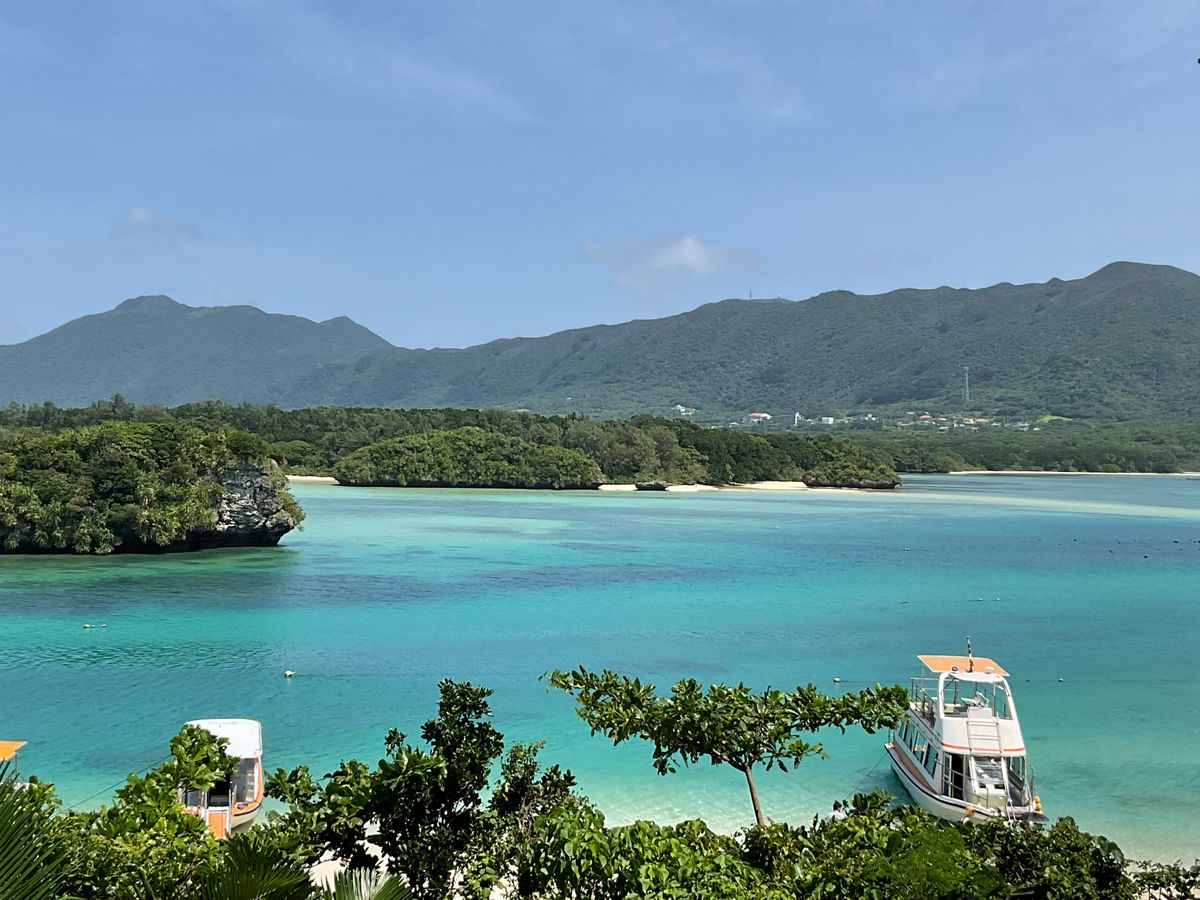 The view of Kabira Bay changes with the tides.