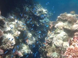 青のサンゴ礁がたくさんあるところでシュノーケルを40分ほどでき、とても満足できました。青のサンゴは、とても綺麗でした!風があり少し濁ってはいましたが魚もたくさんで子供たちも喜んでいました。年長の子供が早めに船に戻りたいというので預けて船でみてもらえたので、母親の私は1人でゆっくりシュノーケルできました。ありがとうございました(^^)