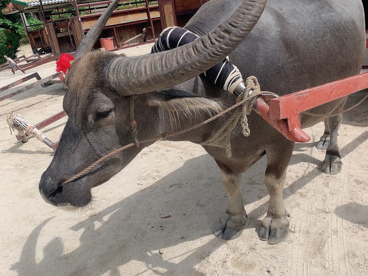 あいにくの天気だったので、グラスボートと水牛で帰る事にしました。