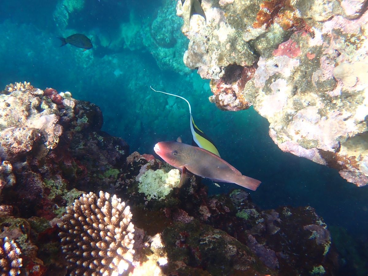海は綺麗で、魚がたくさんいて、水族館の魚を目の前で見てるような感じで、別世界を味えました。