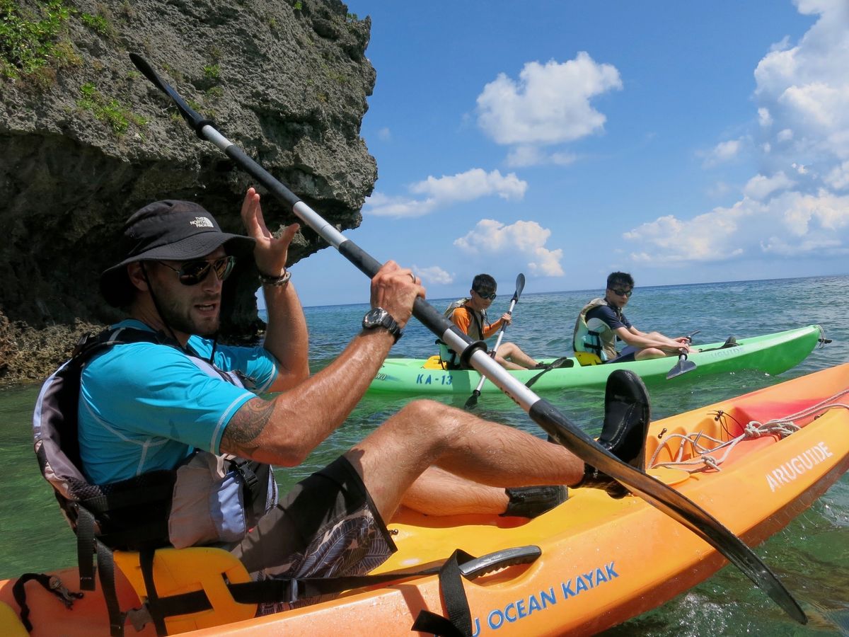 We took a 2-hour kayaking adventure along cliffs near Malibu beach provided by Aruguide. We enjoyed the activity very much thanks to Ryan who was our energetic instructor with expertise on kayaking in Okinawa waters. This was a bonus to us as we never expected to have an English speaking trainer whom we could communicate at ease since we don't speak any Japanese at all.