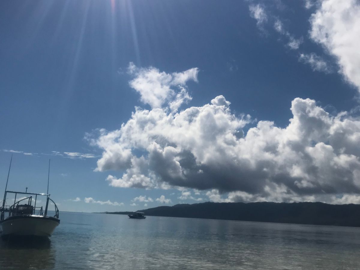 ツアー終わり、上原港に戻るボート移動中に大雨が降ってしまい、着替えを持たずに行ったのでずぶ濡れに…