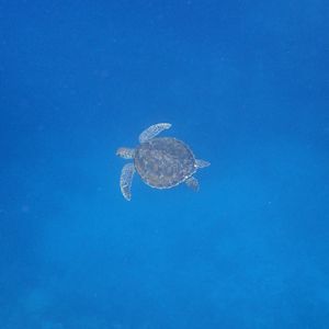 青の洞窟でのシュノーケリング時にウミガメに遭遇しました。