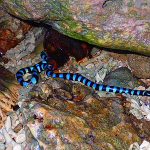 また、岩がある方を見るとウミヘビが2匹いて、寝るために、隠れていました。
