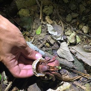 かなり込み入ったサウナのような湿地帯を探すこと約1時間、ようやく目的のヤシガニを2匹もみることができました!