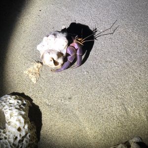 The weather wasn't very good, but we were able to see the starry sky, and we spotted a few coconut crabs on the beach.