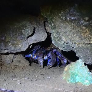We also stopped at a high point where we could enjoy a beautiful night view of Ishigaki City. After about 20 minutes, we moved to the beach, and finally, it was time for the night safari! Each of us held a flashlight, and while searching, a large coconut crab appeared from a gap between the rocks. It was huge, blue, and shy. It quickly hid as soon as it sensed our presence, so we couldn't observe it closely, but it was truly big. We also saw other natural monuments like hermit crabs and crabs living in the tide pools, as well as a mini hermit crab housing battle, making it a valuable experience. I highly recommend this night tour for a thrilling and different kind of adventure!