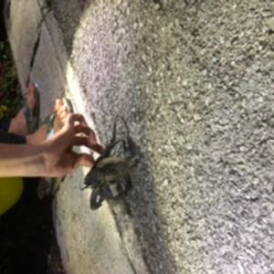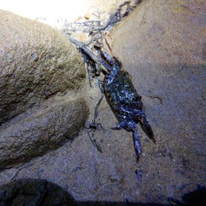 見られたのは、ゴキブリ、カニ、クモ、ヤドカリ、川で小さなエビを見つけました。