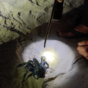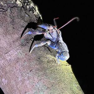 Although we couldn't see the starry sky, we were able to encounter many creatures like coconut crabs, frogs, and hermit crabs!