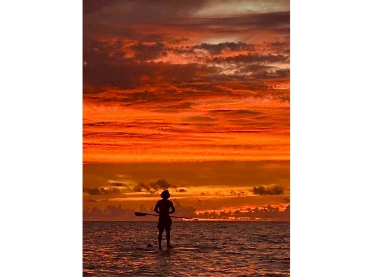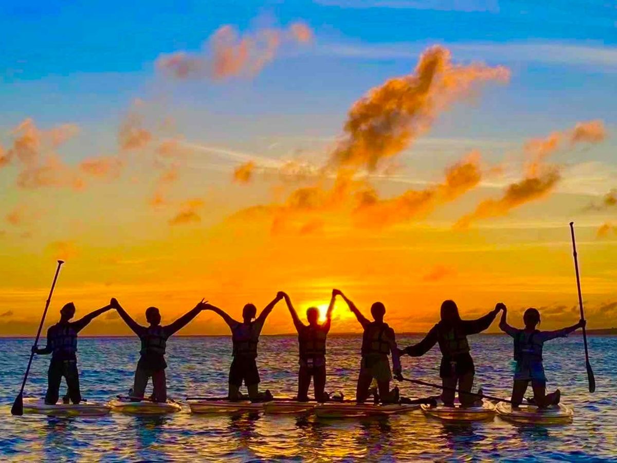 Enjoy Miyakojima’s stunning sunset on a Clear SUP! Watch the glowing sea and sky through a transparent board. Free photos, videos, and equipment included — perfect for beginners and families!