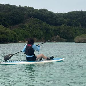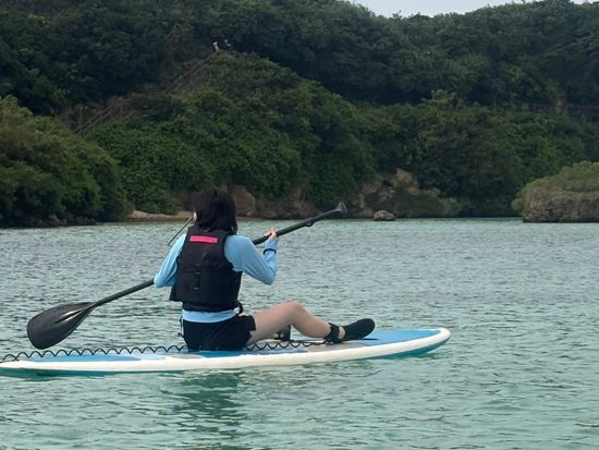 It was my first time doing SUP, but our guide, the dandy Gen-chan, taught us carefully, and I was able to grasp the techniques quickly. It was so much fun! On the way back to the parking lot after SUP, he also taught us about the plants of Miyako Island. I learned about plants I didn't know before, and I felt like I became more knowledgeable!