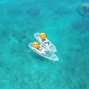 クリアカヌー、SUPは底が見えるので海面上でははっきりと見えない魚も見えたり、底のサンゴ見えるため満足感は高く非常に楽しくすごせました。