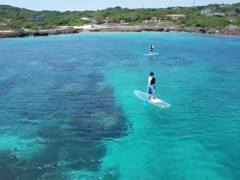 初めてのクリアSUPでしたが、立って風を感じるのも、座って魚や珊瑚を見るのも、どちらも楽しめてとてもよかったです。そして何より、天気のよい日は撮ってくれるというドローン動画がとっても素敵でした!!!
