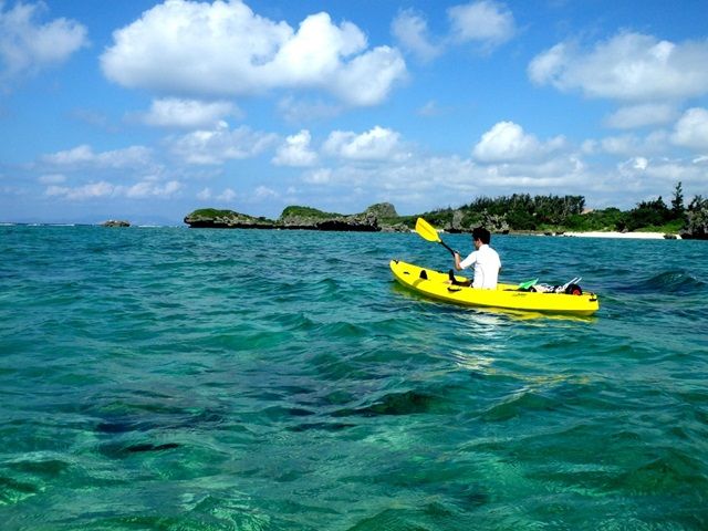 Explore the surrounding waters of Cape Maeda on a sea kayak. Paddle out to the clear blue sea and discover the underwater sea life with a snorkel you can only see here.