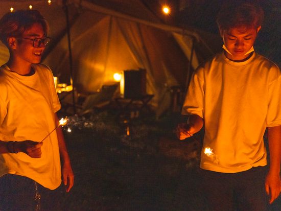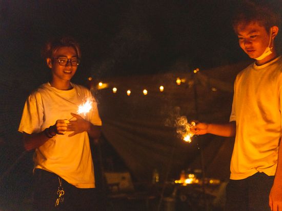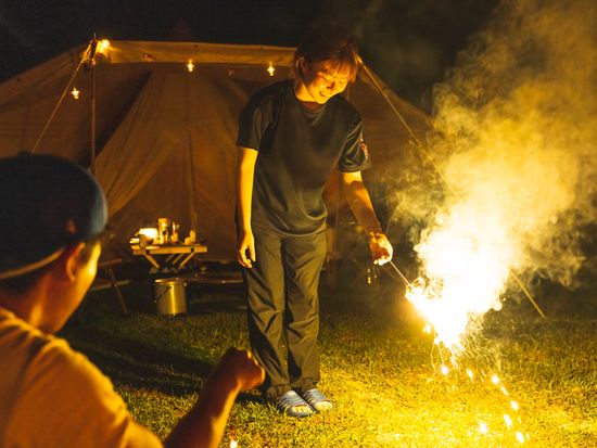 花火などで夜のビーチを堪能