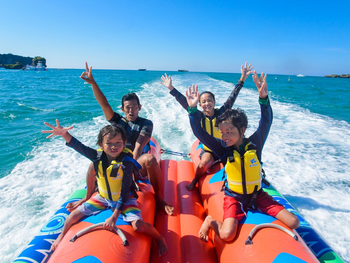 Join the Banana Boat Tour for breathtaking sea views of the famous Manzamo. Suitable for all ages, this tour offers both thrilling and gentle rides.